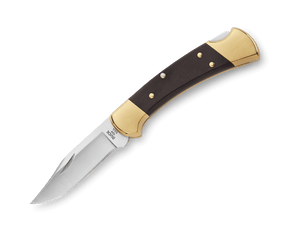 It all began with the 110 Folding Hunter. The 110 could be found on many sailors' belts in the Navy. A couple of sailors got into a fight one day, and the 110 Folding Hunter was used. As a result, the captain issued a decree that knives carried could not have a blade length of a specific size. The 110 ended up being too long, so Buck Knives took the initiative and created the Ranger, a smaller version of the 110. The 112 is another traditional favorite. Closed Length: 4 1/4" (10.8 cm). Imported sheath.