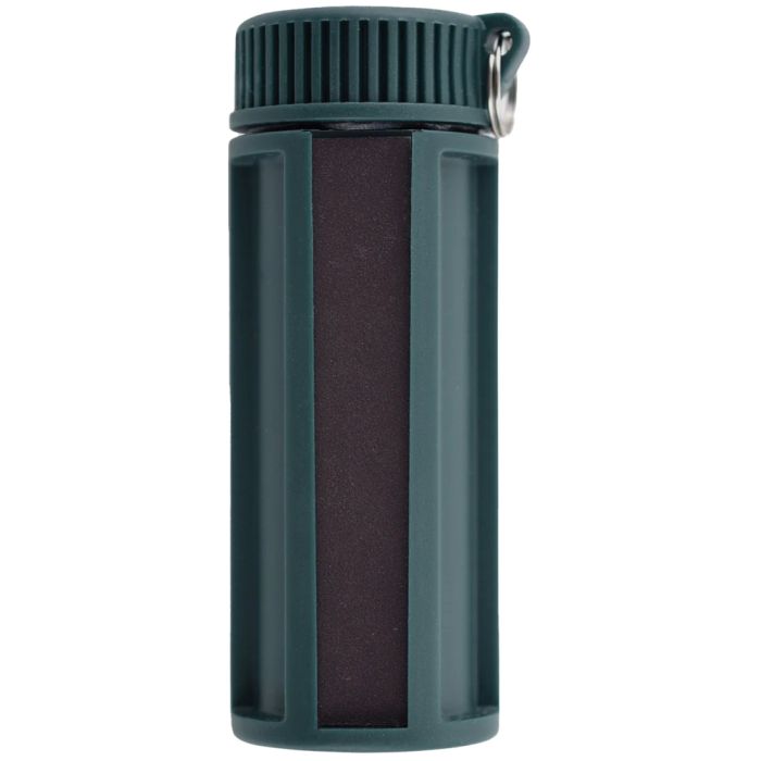This match box is high-visibility orange plastic ensuring it won’t get lost. It holds enough matches for a weekend trip and features a rubber o-ring for a watertight seal. It also includes a fire-starting flint on the bottom of the case.