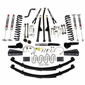 6 in. Lift Sys With Front DR/LT Coil Springs, Pitman Arm, Bump Stop Spacers, Lower and Upper Adjust Control Arms, Front Sway Bar End Links, Adjust Track Bar, Front and Rear Brake lines, Shackles, U-bolts, Rear Leaf Springs, Front and Rear Shocks (Choose Shocks Above)